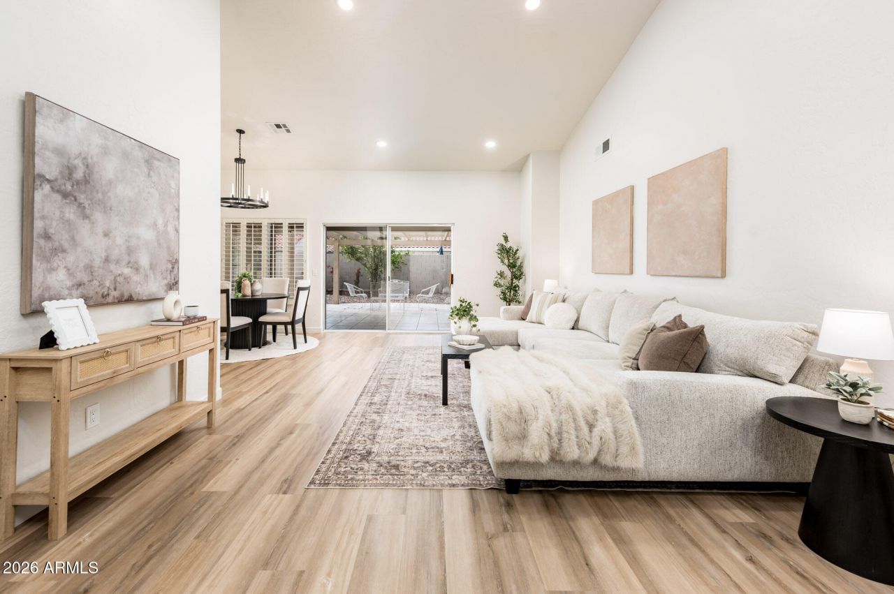 Welcome to 1033 E Hearne Way, a beautifully upgraded 4-bedroom home in the heart of Gilbert. This spacious residence features high-end custom finishes throughout, including a stunning kitchen with custom cabinetry and Taj Mahal quartzite countertops. The bathrooms have been fully updated with modern, stylish designs. Step outside to a beautifully landscaped backyard with a peaceful fountain, perfect for relaxing or entertaining. Located less than 5 minutes from Downtown Gilberts dining, shopping, and entertainment, this move-in ready home also features a newer AC and water heater, offering comfort, convenience, and an exceptional location.