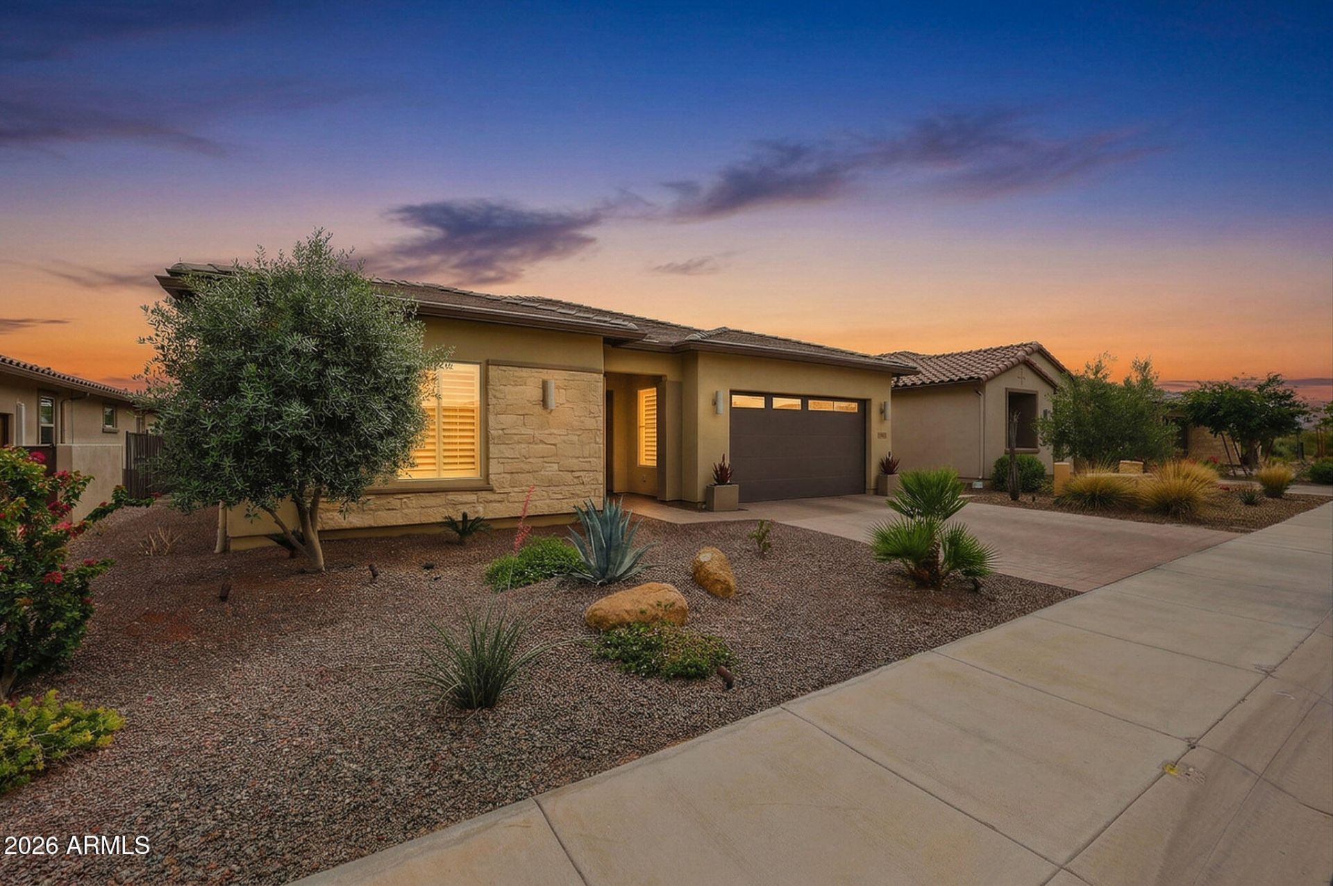 This exceptional, HIGHLY UPGRADED Montage floorplan (completed in 2022) shows like amodel home and must be seen to be fully appreciated. Thoughtfully designed withluxury and comfort in mind, every detail has been carefully curated--from thetemperature-controlled 3-car tandem garage to the expansive 15-foot MULTI SLIDE GLASS DOORS that seamlessly blend indoor and outdoor living. Inside, youll find ELEGANT planktile flooring throughout (excluding bedrooms), PREMIUM split-tilt plantation shutters, anda deluxe whole-home water filtration system. The GOURMET kitchen is a showstopper,featuring quartz countertops, a gas cooktop, upgraded 42 upper cabinets, and high-end stainless-steel appliances, including a GE Monogram hood and a built-in 42 GErefrigerator. Additional highlights include LED under- and over-cabinet lighting, rolloutshelving, a walk-in pantry, and a sleek single-basin sink. Both primary suites offerspacious retreats with walk-in closets and luxurious en-suite bathrooms completewith designer-tiled walk-in showers, premium glass enclosures, granite countertops, anddual vanities. The large den is enhanced with a custom built-in wall unit, overheadLED lighting, and plantation shutters--perfect for a home office or media space. Stepoutside to enjoy Arizonas beautiful winters in your elevated, south-facing backyard, fullyfenced and designed for low maintenance with an extended paver patio and high-qualityfaux grass. Open the multi-slide doors to create the ultimate indoor/outdoor livingexperience. Car enthusiasts and hobbyists will love the oversized, SENVILLE temperature-controlled 3-car tandem garage with a 4-foot EXTENSION, featuring built-in cabinetry,epoxy floors, and an industrial utility sink--ideal for storage, a workshop, or recreationalvehicles. Located in the award-winning, gated 55+ community of Trilogy at Vistancia,residents enjoy resort-style living with access to the 35,000 sq ft Kiva Club, offeringindoor/outdoor pools, a fitness center, spa, café, tennis, pickleball, bocce ball, and a fullcalendar of social activities. The Mita Club adds even more amenities, includingadditional fitness, pool, culinary, and art spaces. The community also features abeautifully designed golf course by Gary Panks. Conveniently located near Loop 303with easy access to shopping, dining, entertainment, Lake Pleasant, and Paloma Park.Furniture and furnishings available by separate bill of sale for a turnkey opportunity. QUICK CLOSE POSSIBLE !