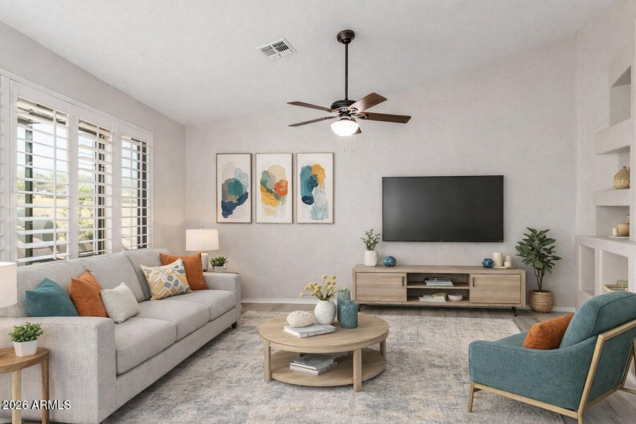 HUGE PRICE REDUCTION - Enjoy easy, low-maintenance living in this beautifully remodeled home located in a desirable 55+ active adult community of Arizona Traditions in Surprise. This single-level residence offers a bright, open floor plan ideal for comfortable everyday living and entertaining. The remodeled kitchen opens to the main living area, while the spacious primary suite provides a peaceful retreat. A secondary bedroom is perfect for guests, hobbies, or a home office.Relax in the low-maintenance backyard and take advantage of outstanding community amenities including golf, clubhouse, fitness center, pools, and a full calendar of social activities. Conveniently located near shopping, dining, medical facilities, and freeway access.