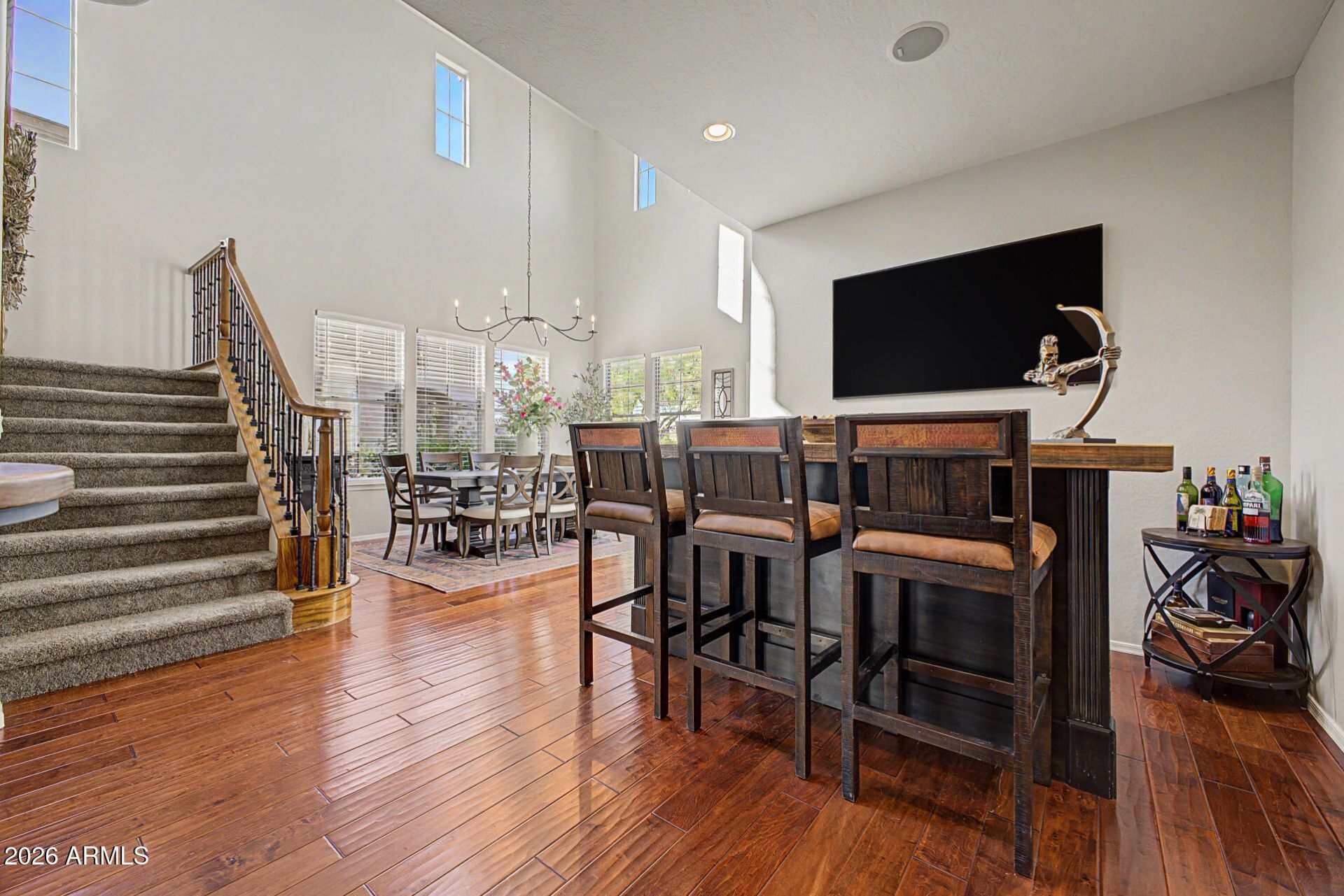 In a sea of cookie-cutter new builds, miniature lots and outdated inventory on the market, only the well-kept and upgraded homes stand out. Welcome to Verdin Road.This spectacular and spacious five-bedroom, three-bath home boasts upgrades rarely found elsewhere. The interior shines with Mohawk hardwood floors, in addition to the new carpet and paint enhanced in 2025. A hand-crafted custom bar with undercounter refrigeration and a timeless chandelier suspended from the 20 formal room ceiling makes this home truly unique. The kitchen comes appointed with a four-piece appliance ensemble from Café - Refrigerator, Range, Dishwasher and Microwave. The convenient second-floor laundry room comes equipped with Samsung Smart Things Washer & Dryer.When not relaxing in the comfort of your new ho step outside into your private oasis. The serenity is unmatched with a view fence and towering mountain directly behind the home.Outdoor upgrades include a 12x25 pool including an extended 8x10 baja. The balance of the yard has been paved with Italian Travertine in a Roman pattern, highlighted with an architecturally designed artificial grass area. All surrounded by extensive landscaping, including multiple palms, bougainvillea, Texas Laural, hibiscus and an orange tree. The side house has a convenient Trexx deck, perfect for your barbeque.Unseen is the upgraded irrigation system in both front and backyard, including PVC mainlines for a lifetime of use.There is nothing left for you to do but move in. Welcome to your new home.