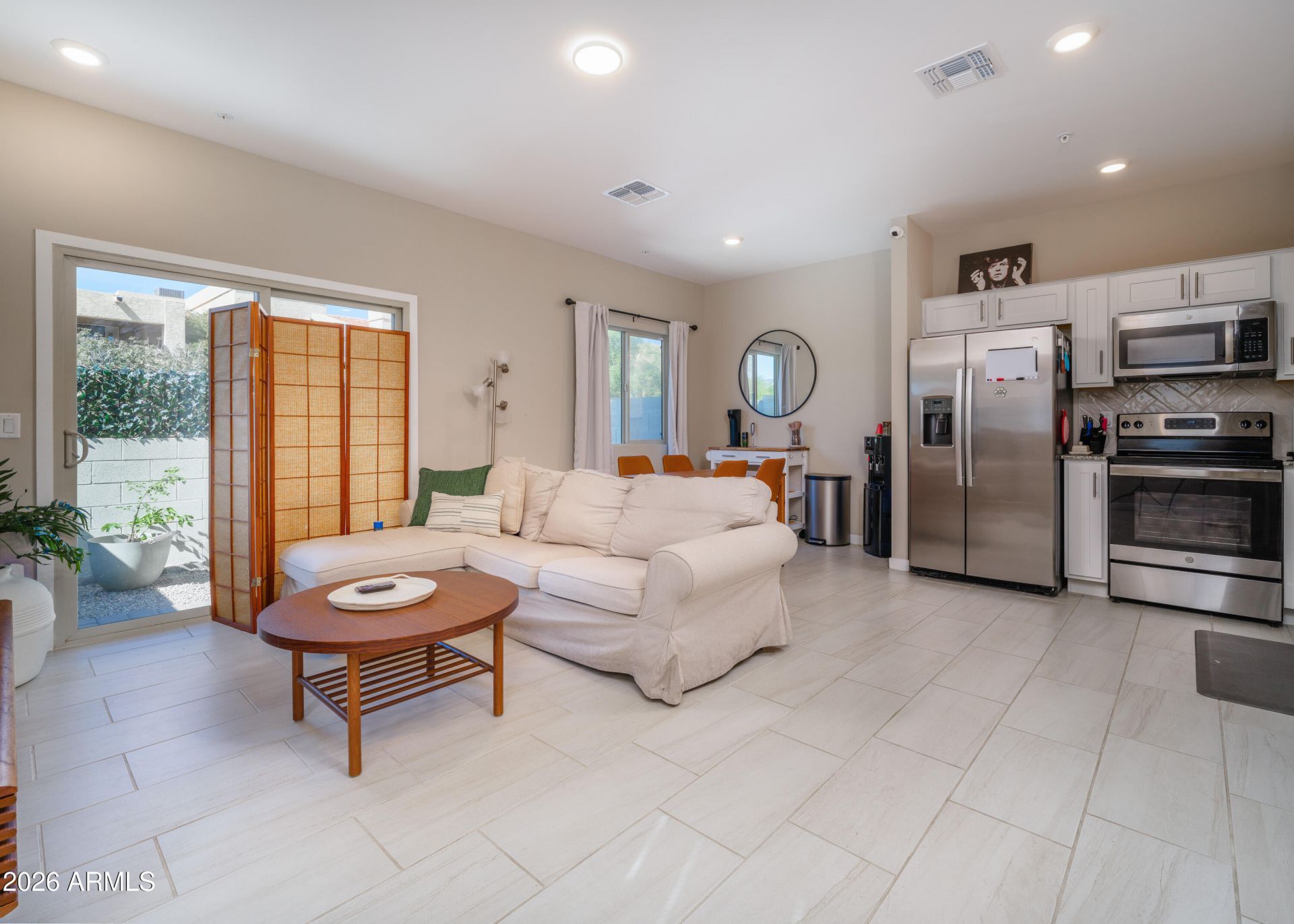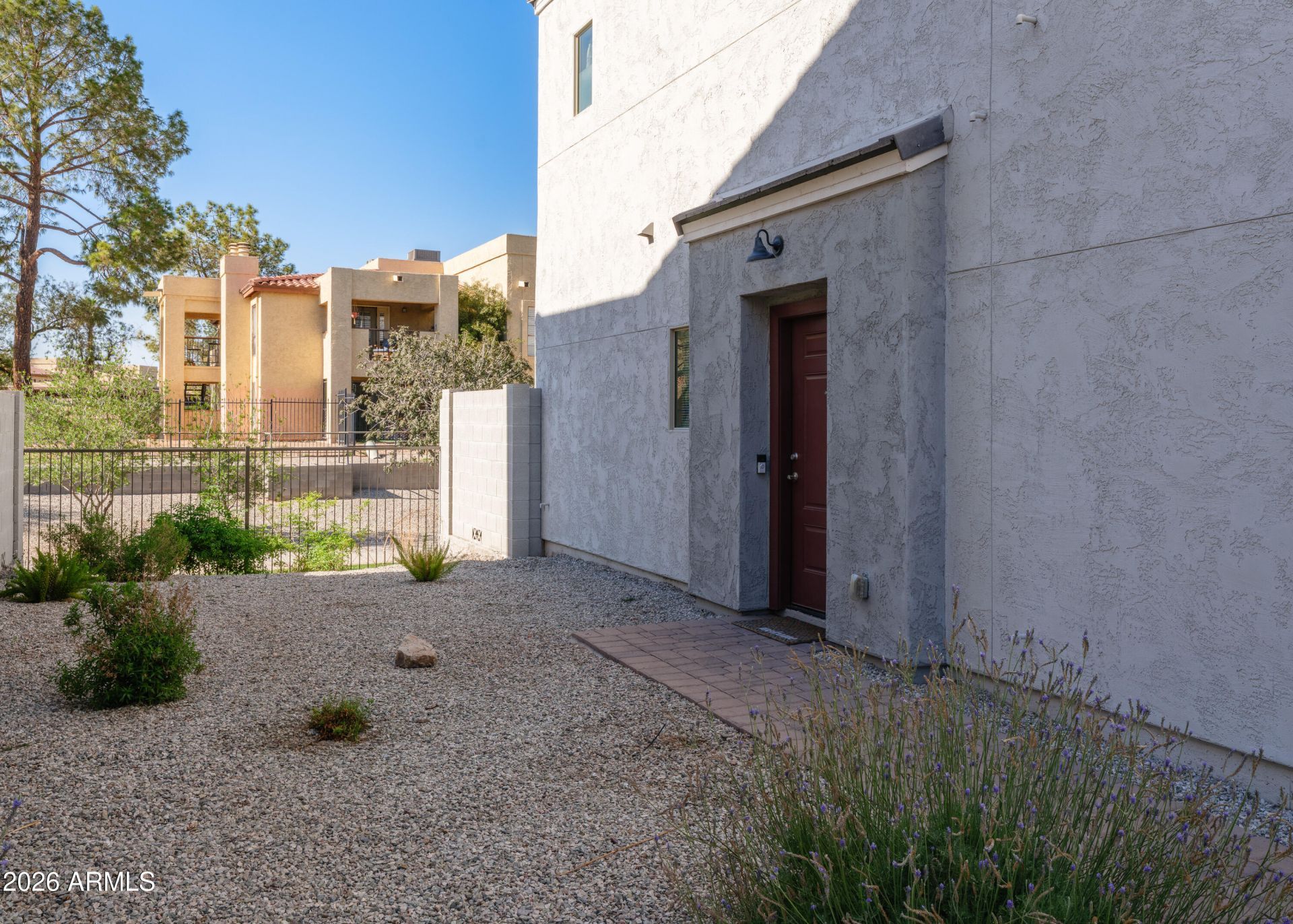 Modern, Chic, and a RARE FIND in 23 North... Oo La-La! Nestled in the quiet center of the subdivision, this 2bd, 2.5ba end unit townhouse is a showstopper. With only one shared wall and natural light from every angle, youll forget youre in a townhouse. Did we mention the 2-car garage? An open kitchen welcomes you with granite counters, new appliances, and tile flooring that flows to a private back patio. Upstairs, find two spacious bedrooms, each with its own en-suite bath and walk-in closet for the privacy and relaxation you deserve. Feel safe and secure in this gated community with resort-style pool, playground, and gorgeous walking paths. Just minutes from the I-17 and the 101. Dining and shopping is right around the corner. Move-in ready, contemporary, and effortlessly maintained.
