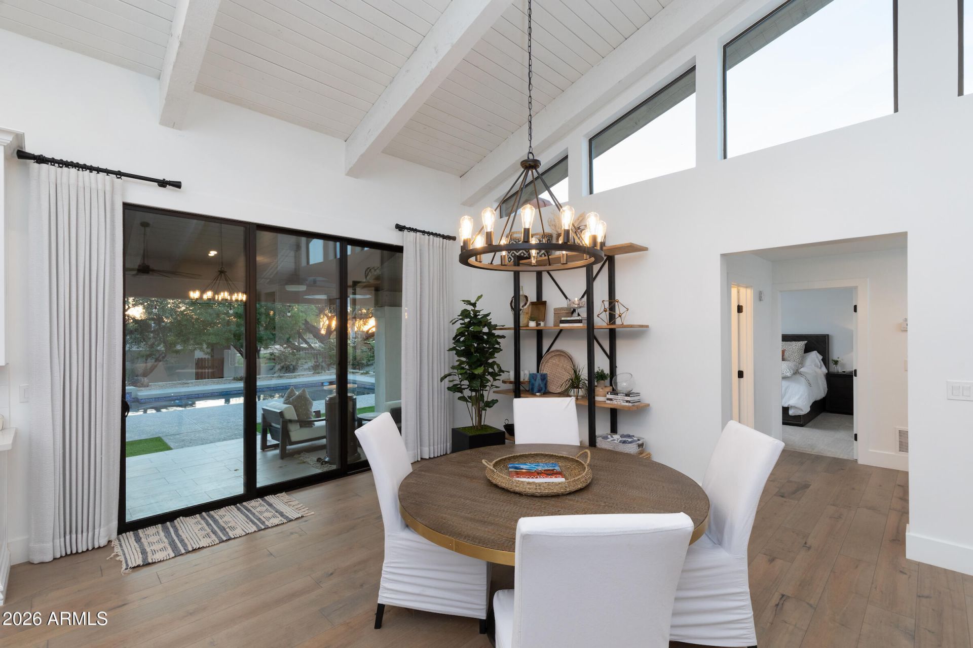 The ultimate retreat awaits within the guard-gated enclave of Pinnacle Peak Country Club Estates in North Scottsdale, where refined desert living meets timeless golf course elegance. Perfectly positioned along the 14th green of a private course, this updated residence with separate guest house offers a rare blend of tranquility, privacy and elevated design - tailored for the discerning buyer. Framed by soaring vaulted ceilings with exposed wood beams, the interiors are both expansive and inviting, anchored by warm hardwood flooring and a clean, contemporary aesthetic. Thoughtfully curated upgrades include a designer kitchen appointed with premium appliances, quartz surfaces and custom cabinetry - seamlessly connecting to open-concept living spaces designed for both everyday comfort and effortless entertaining. Walls of glass extend the living experience outdoors to a professionally designed backyard retreat overlooking the lush fairway. A resort-style pool and spa, generous patio spaces and multiple lounging areas create an ideal setting for year-round enjoyment - whether hosting under the Arizona sky or savoring quiet moments surrounded by desert serenity. Set within one of North Scottsdales most established golf communities, residents enjoy a lifestyle defined by scenic beauty, mature landscaping and proximity to world-class golf, dining, hiking and upscale amenities - offering the perfect balance of privacy, prestige and convenience.