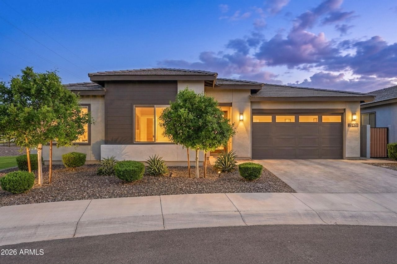 Why wait on a new build? This Tri Pointe home is move-in ready with all the upgrades done for you. 4 Bed : 3 Full Bath : Game Room : Office : 3-Car Tandem Garage. Gourmet kitchen features a 6-burner gas range, natural maple shaker cabinets, dark honed countertops & travertine backsplash. Zero carpet throughout. Split floor plan with open concept living, large W.I.C., covered outdoor patio & finished yard. Community pool. Walk to Starbucks, bike to Frontier Park -- QCs newest regional park. THE HOME3,081 sq ft : Single Level : Corner Lot : Built by Tri PointeKITCHEN* 6-burner gas range* Natural maple shaker cabinets* Dark honed countertops* Travertine backsplash* Open to great roomBEDROOMS & BATHS* Primary suite with oversized walk-in closet* 3 full baths* All bedrooms split from primary* Zero carpet -- tile & hard surface throughoutBONUS SPACES* Game room tucked between bedrooms -- perfect for kids or flex use* Dedicated office* Covered outdoor living patioGARAGE* 3-bay tandem garage -- room for cars, toys, and storageCOMMUNITY* HOA includes community pool* Walk to Starbucks* Bike to Frontier Park -- Queen Creeks newest regional parkWHY THIS OVER NEW CONSTRUCTION* No wait. * No surprises. * No upgrade headaches.* Yard is finished. Everything is done.* Just move in.
