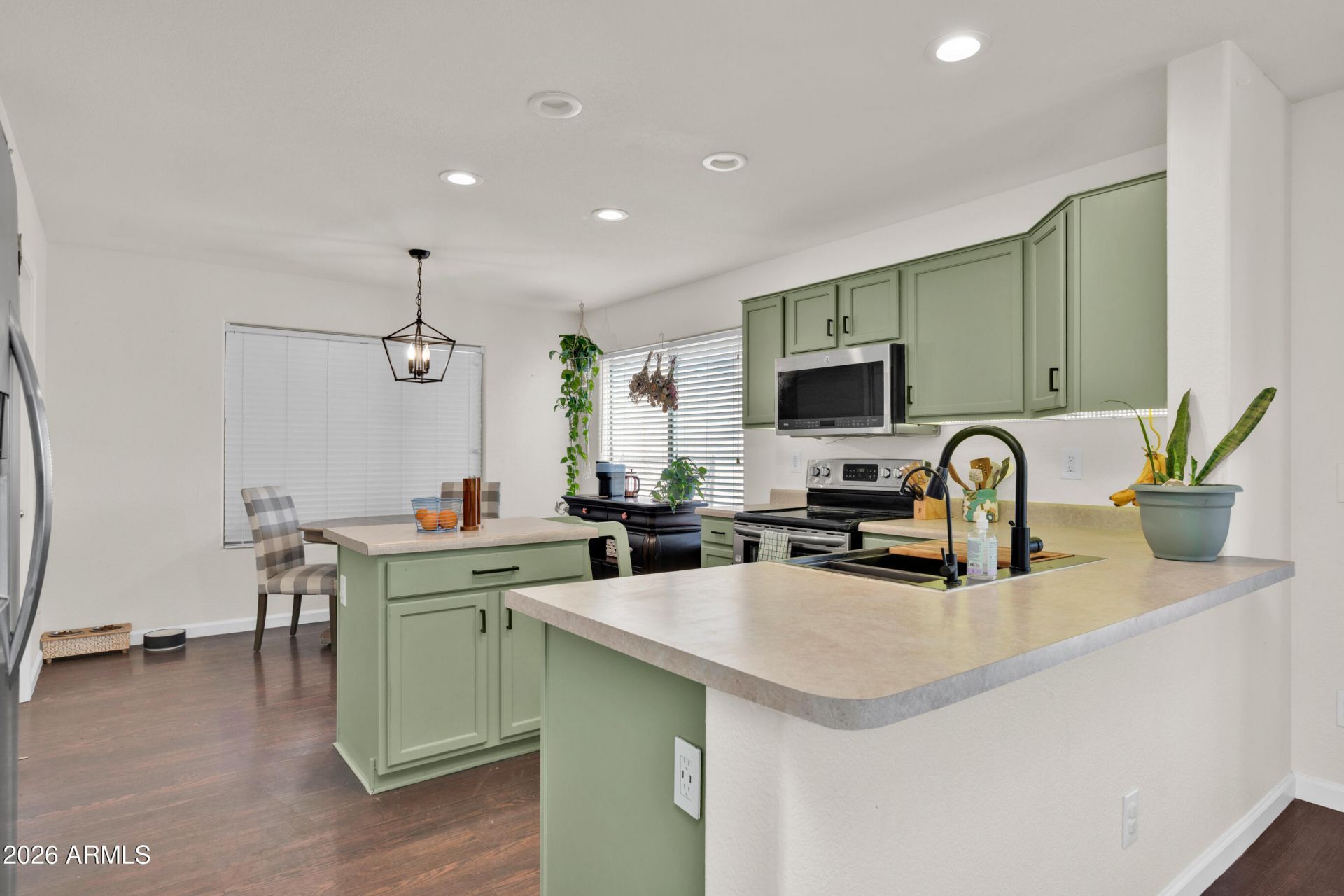 Beautiful move-in-ready 4-bedroom, 2.5-bath home with a fantastic floor plan featuring formal living and dining areas plus a spacious family room. The open kitchen offers an island, updated white cabinetry, stainless steel appliances, and a huge pantry. Upstairs, the large primary suite includes dual sinks, a separate tub and shower, and his-and-hers closets, while the secondary bedrooms are generously sized. The private backyard features a covered patio with surround sound, fenced spool, putting green, firepit, and BBQ/bar area for easy entertaining. Attached 2-car garage. Tucked at the end of a cul-de-sac for added privacy, with walking path and park access behind the home, and just minutes from Norterra, I-17, USAA, hiking trails, and Taiwan Semiconductor Manufacturing Company.