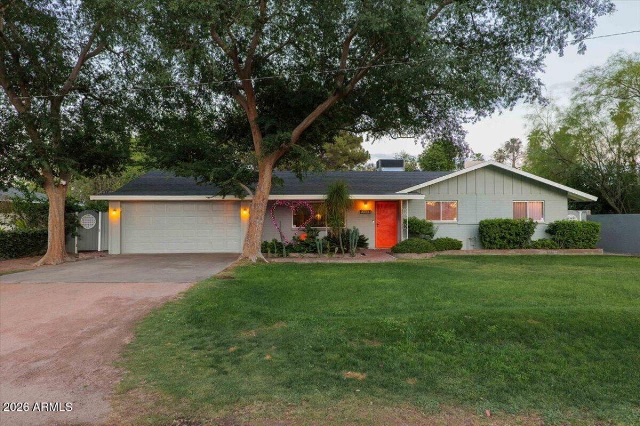 Mid-Century Modern in Phoenix Homesteads! This amazing home has been meticulously restored, maintained and improved - all while preserving its mid-century soul.A lush lawn and shade trees welcome all to this classic ranch. Inside, polished concrete floors and a playful palette of colors enhance the modern aesthetic, and the remodeled kitchen and baths retain historic design,but w/modern comforts and reliability.Expansive layout features 4 bedrooms, 2 baths, and primary suite includes walk-in closet, remodeled bath and separate exit. Back yard includes a fabulous pool surrounded with sun zones, a covered gazebo, w/foliage everywhere. 2 car garage w/ attached bonus flex space.Infrastructure updates include new roof, attic insulation, sewer line, variable speed pool pump and more!