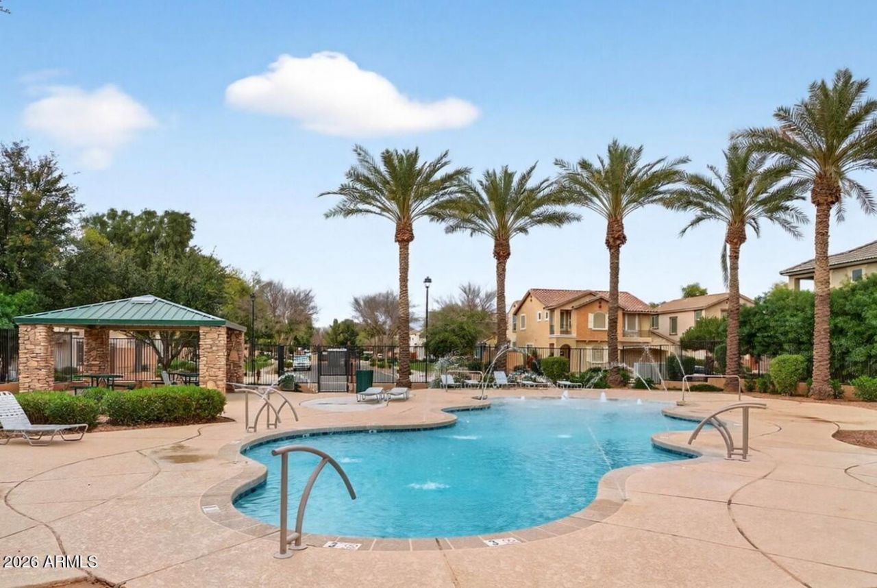 A RARE BASEMENT home in an ideal location, quietly tucked into a welcoming community yet just minutes from top schools, shopping & restaurants. This turnkey updated home offers just under 2,600 sqft w/ 4 bedrooms, 3.5 baths & a basement designed for real living, featuring a dedicated theater space or bonus living area, bedroom, and bath, perfect for movie nights, guests, or multi-use living. Upstairs, a functional open layout, & a kitchen w/ granite countertops, breakfast bar & bright dining area w/ glass sliding door leading to the backyard. The spacious primary suite includes a large walk-in closet & a well-appointed bath w/ dual sinks & separate tub. Recent upgrades include custom paneling throughout & new AC unit for added comfort & efficiency. Short term leasing is permitted. Outside, enjoy fruit trees & a low-maintenance yard w/ new turf, ideal for easy Arizona living. The community offers a pool, parks, & sports courts, creating a neighborhood feel while remaining peaceful & mature landscaping. This home blends space, flexibility, & lifestyle in a setting thats hard to find and just right.