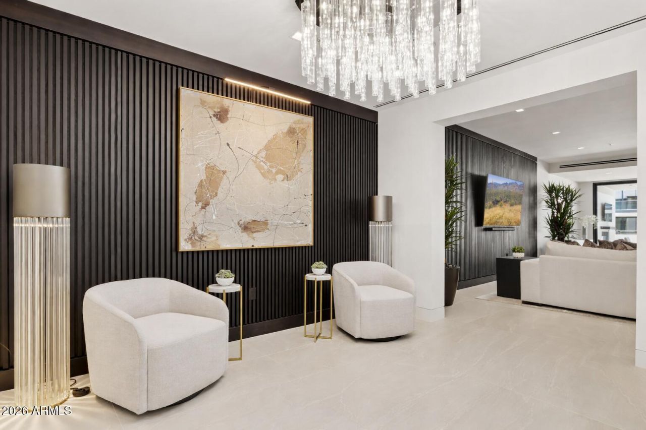 Branded residences at The Ritz-Carlton Residences, Paradise Valley represent one of the most coveted luxury asset classes, blending five-star living with long-term value. This custom-designed, End-unit residence designed by Ownby Design offers a rare turnkey opportunity, complete with bespoke interiors and the option to purchase the custom living room, foyer, and dining furnishings for a fully curated experience. Ideally positioned with tranquil courtyard views, enhanced privacy, and private elevator access to a secure underground garage, this home delivers both exclusivity and ease. Set within what is being coined the modern country club of Paradise Valley, residents enjoy a lifestyle defined by resort-style amenities and future Ritz-Carlton hotel and retail offerings. No two residences here are the same. This home was thoughtfully designed with bespoke lighting, designer wall coverings, and Waterworks fixtures throughout. The chefs kitchen is anchored by a striking quartzite island with push-to-open cabinetry and Rev-A-Shelf systems, Wolf appliances including an induction cooktop and built-in coffee system, Sub-Zero refrigeration with four additional refrigerator drawers, and an integrated wine dispenser.Large-format tile flooring and a sleek paneled TV wall elevate the open-concept living space, while a split floor plan ensures privacy. Double doors lead to the serene primary suite overlooking the courtyard, where dual vanities, custom storage, and a spacious walk-in closet create a spa-like retreat.Set against Camelback and Mummy Mountain views, residents enjoy a clubhouse that feels more like a five-star resort, complete with concierge service, elegant lounge spaces, a state-of-the-art fitness center, conference facilities, private underground parking, and giard gated. Future development will include the Ritz-Carlton hotel, curated retail and dining, and exclusive owner privileges that continue to elevate both lifestyle and long-term value.This is not just a home. It is a refined investment in one of Paradise Valleys most prestigious and forward-thinking communities. Featured on ABC15 Arizona Real Estate Essentials, this 3 bedroom, 3.5 bath villa delivers five-star living with contemporary sophistication, with each bedroom offering its own ensuite bath for private, hotel-level living.