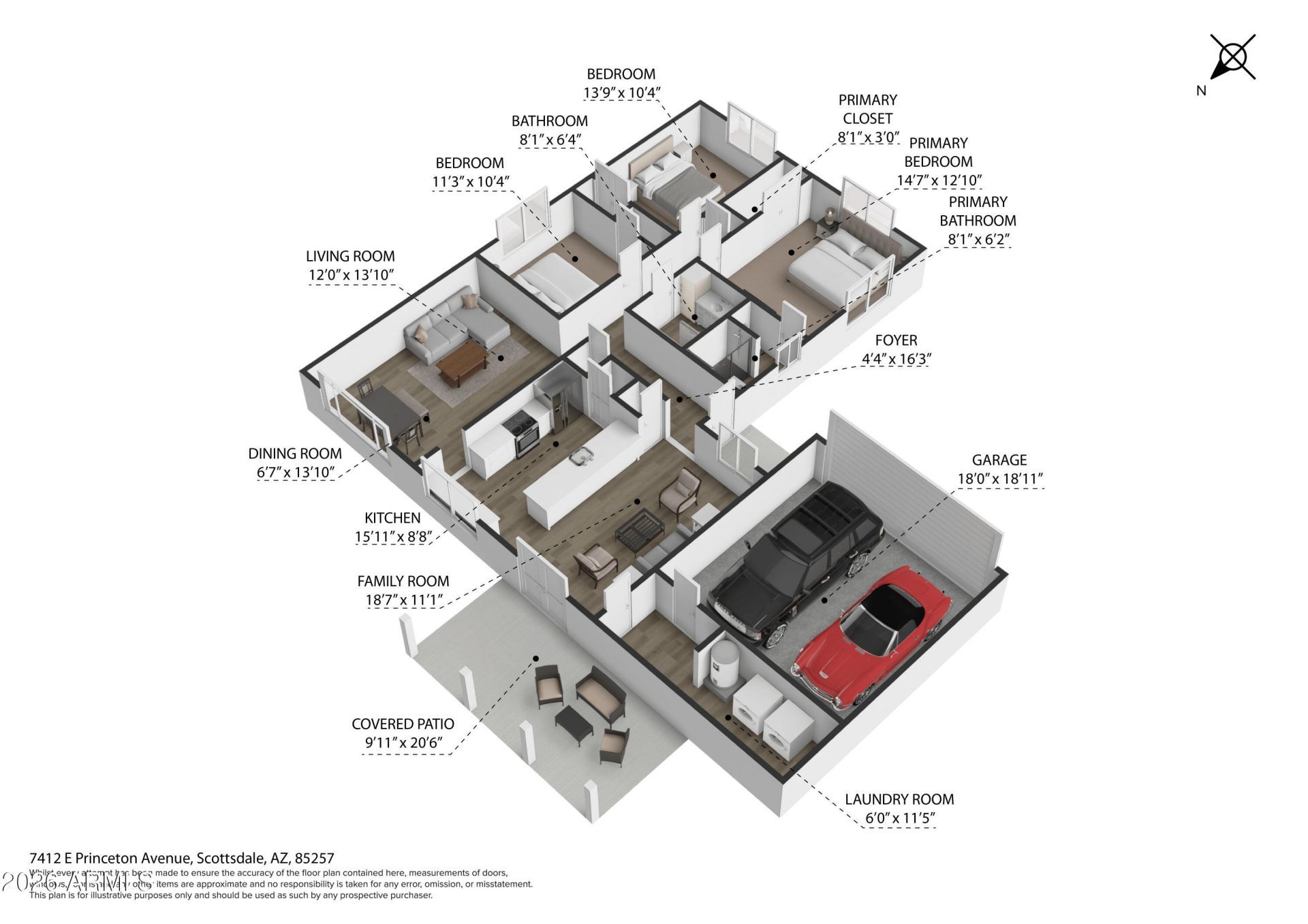 Welcome to this stunning mid-century modern home in a prime Scottsdale location with no HOA and solar, just minutes from ASU, Old Town Scottsdale, Scottsdale Fashion Square, and Tempe. This pristine 3 bedroom, 2 bath home offers a bright and open floor plan with thoughtful updates throughout, making it perfect for both everyday living and entertaining. As you step inside, you are greeted by warm vinyl wood flooring that flows through the main living spaces, creating a clean and inviting feel. The home features multiple living areas including a spacious living room, family room, and dining space, giving you plenty of room to relax or host guests. The kitchen is both stylish and functional with quartz countertops, an island for prep and seating, and ample cabinet space for storage. The primary bedroom is generously sized and includes a walk-in closet, providing a comfortable and private retreat. This home also includes solar, helping reduce energy costs while adding long-term value. Step outside and discover a backyard designed for enjoyment, complete with a diving pool, an extended covered patio for shade, and a paved seating area perfect for gatherings or quiet nights under the stars. With its ideal location near top dining, shopping, and entertainment, along with its flexible layout, modern updates, and energy-saving features, this home is a fantastic option for a first-time buyer or a great investment opportunity.
