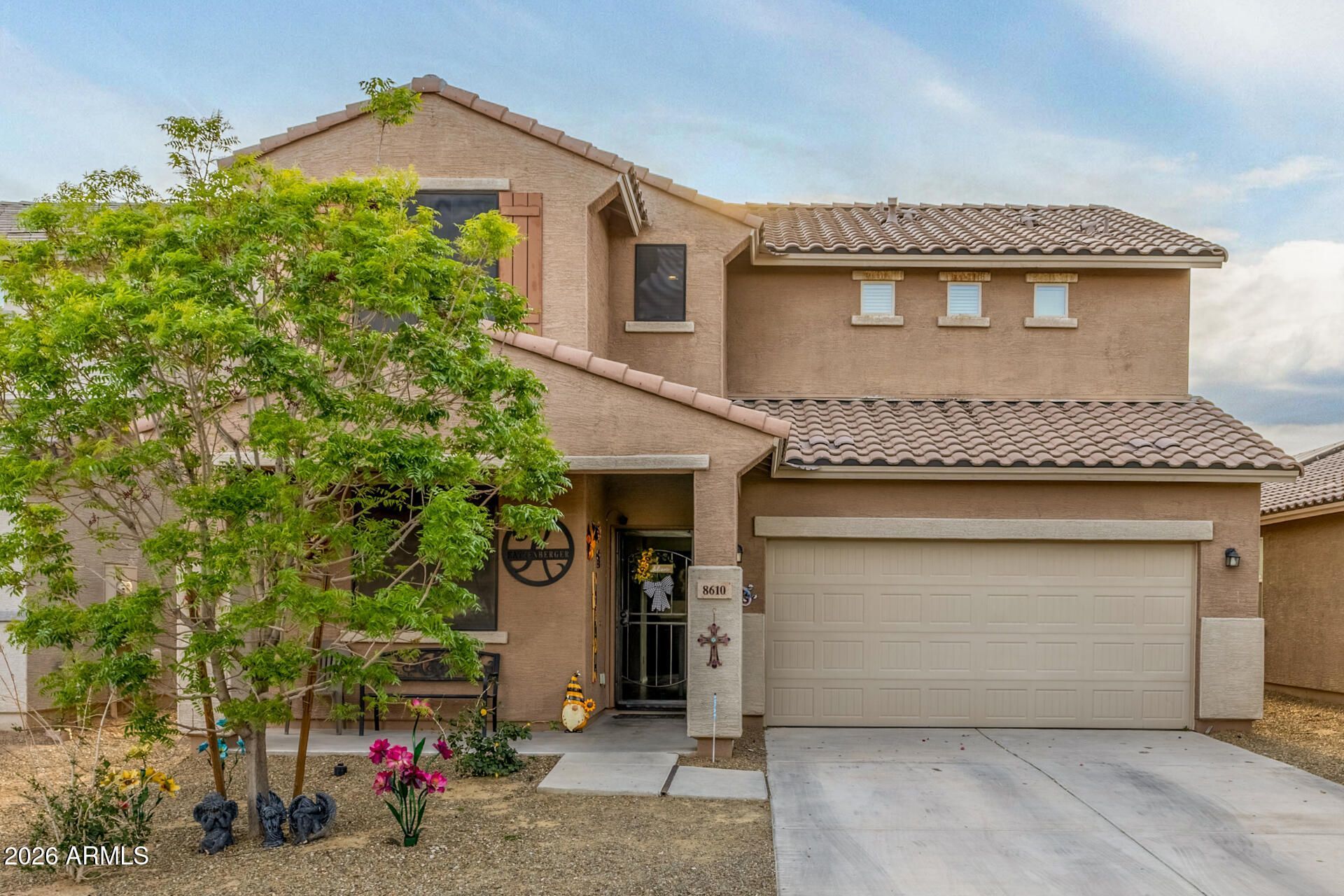 Welcome to this beautifully maintained two-story home located in the gated community of Alice Park in Glendale. Built in 2018, this newer residence offers 3 bedrooms, 2.5 bathrooms, and a 2-car garage with a thoughtfully designed layout that blends comfort and functionality.Step inside to find a versatile den right off the entry, perfect for a home office or additional living space. The open-concept floor plan creates a seamless flow between the kitchen and great room, ideal for everyday living and entertaining. The kitchen features upgraded cabinetry, granite countertops, and ample storage, all overlooking the main living area. Tile flooring spans the entire first floor, offering both style and durability. Upstairs, you will find well-appointed bedrooms designed for comfort and privacy The backyard is low-maintenance and designed for enjoyment, complete with artificial turf and a concrete walkway leading to a cozy seating area, perfect for relaxing and taking in Arizonas stunning sunsets. Located in a desirable gated community with convenient access to shopping, dining, and major freeways, this home offers the perfect balance of modern living and everyday convenience.