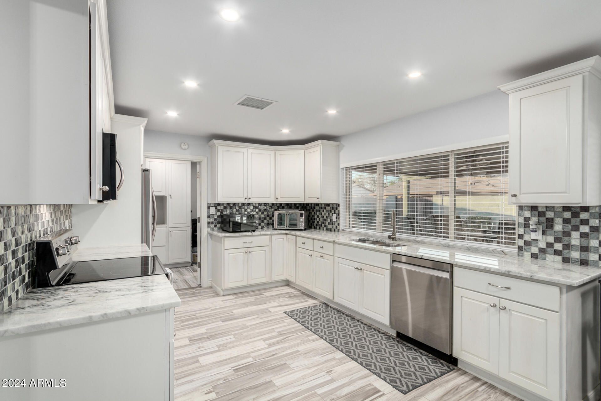 Beautifully remodeled home in North Chandler with no HOA! Tons of updates including a new roof (2020), HVAC (2024), water heater (2024), pool equipment (2024), attic insulation (2024) and much more! Updated kitchen with granite counters, custom cabinetry, tile flooring, and tons of light. Large primary bedroom with vaulted ceilings and gorgeous remodeled ensuite bathroom. Sought-after corner lot with RV gate, private diving pool, surrounded by a travertine patio and new turf. Updated landscaping and newer paint both interior/exterior. Prime Chandler location near top-ranked schools, restaurants, shops, aquatic centers, and more. Welcome to your Dream Home!